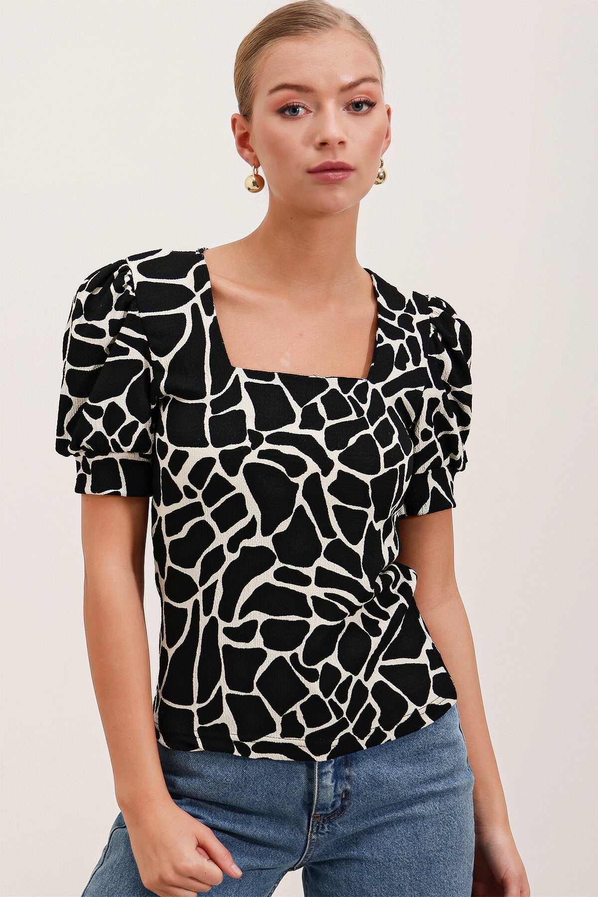 Kare Yaka Örme Bluz - H. Siyah 0409