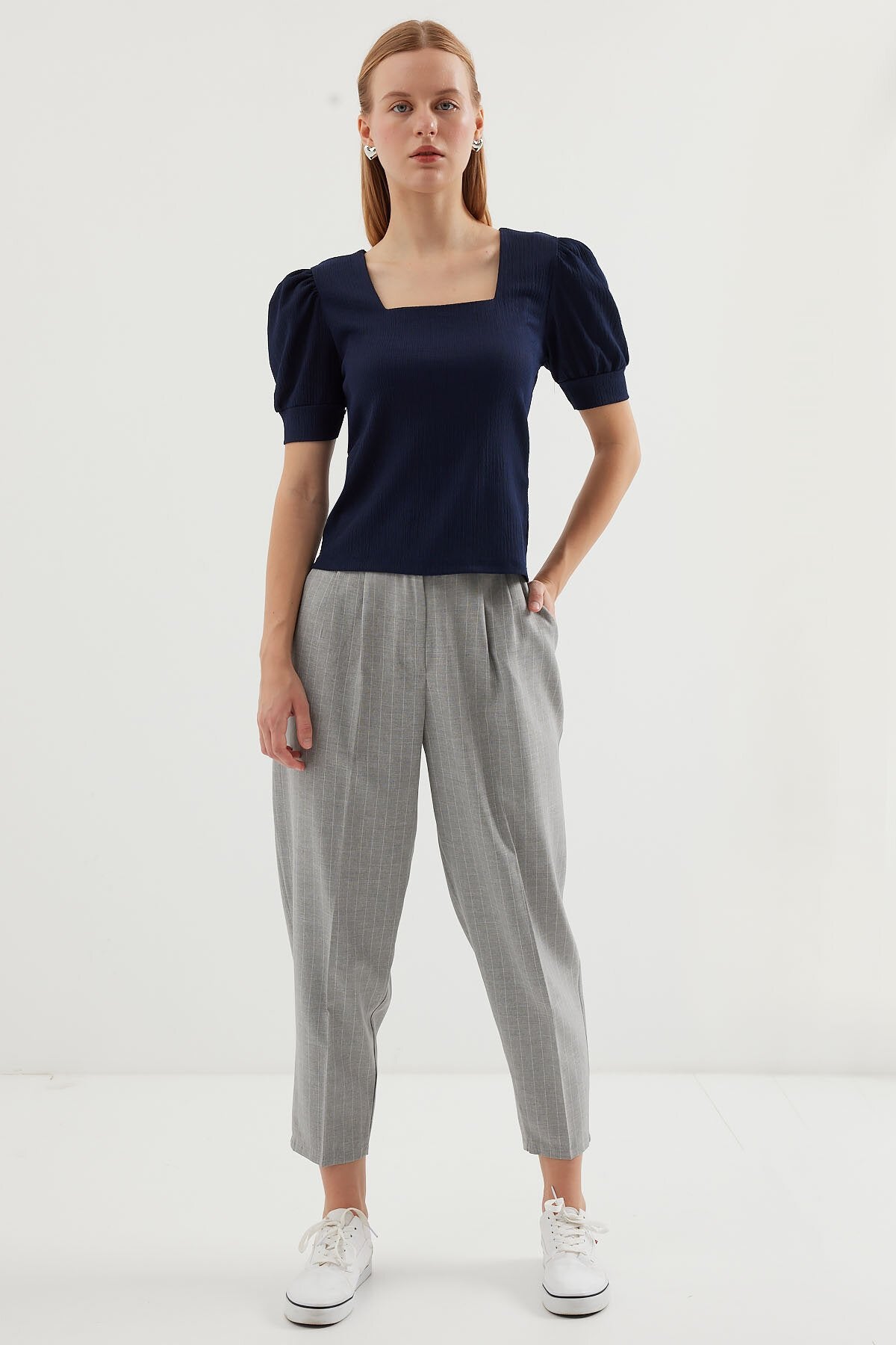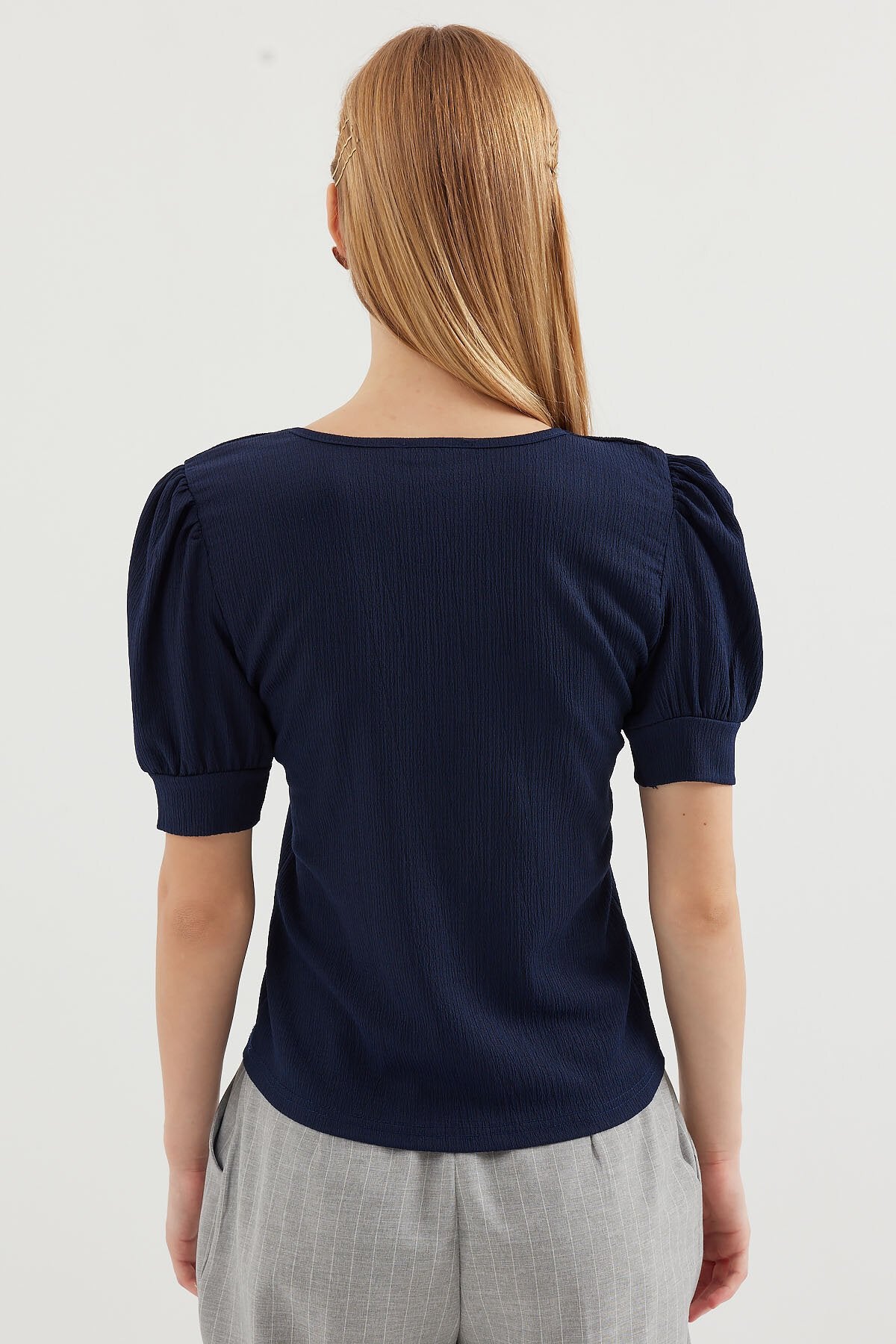 Kare Yaka Örme Bluz - Lacivert 0409