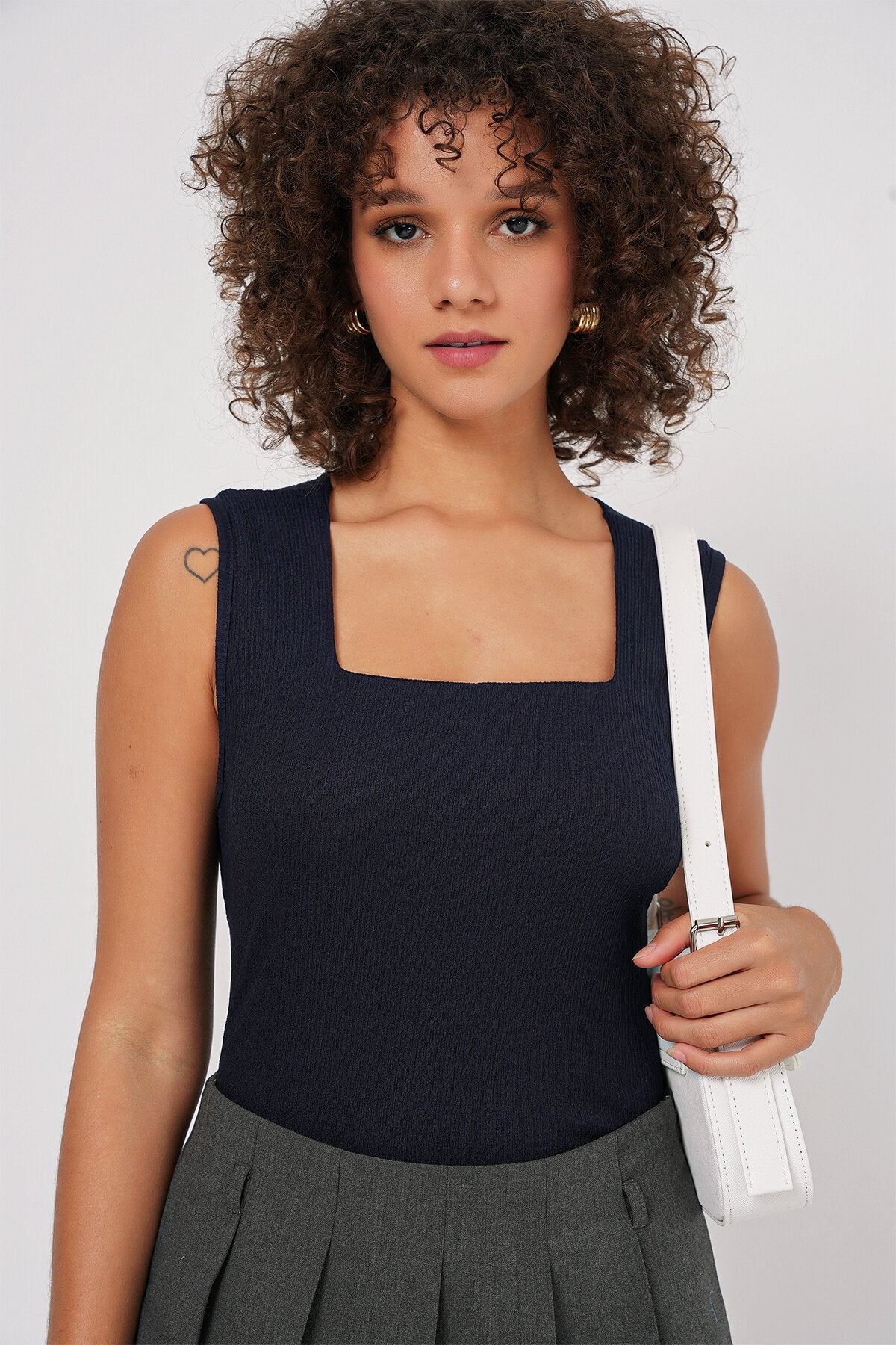 Sıfır Kol Örme Bluz - Lacivert 0476