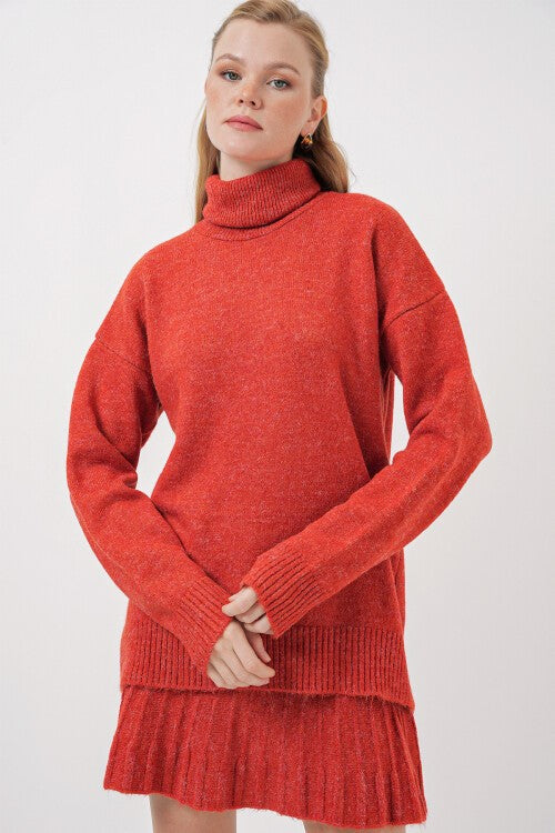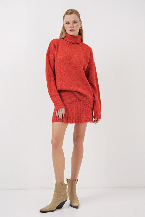 Kazak Etek Triko İkili Takım - Kiremit 15891