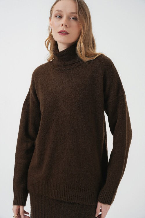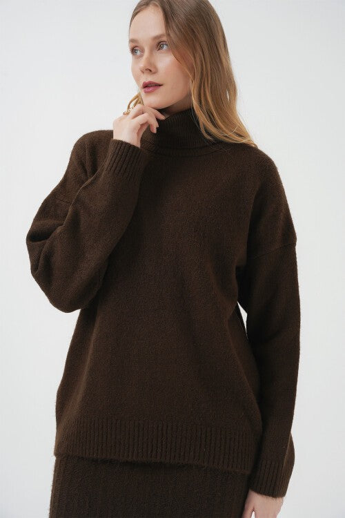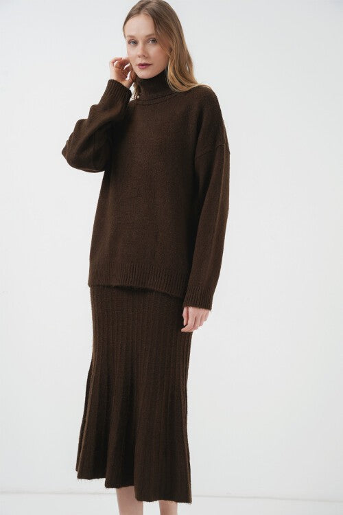 Kazak Etek Triko İkili Takım - Kahverengi 15892