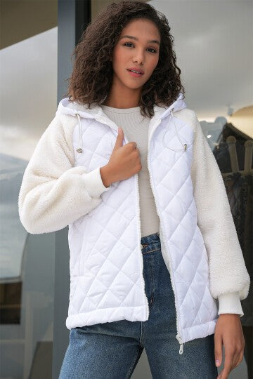 Kolları Peluş Kapitone Mont - Beyaz 5201