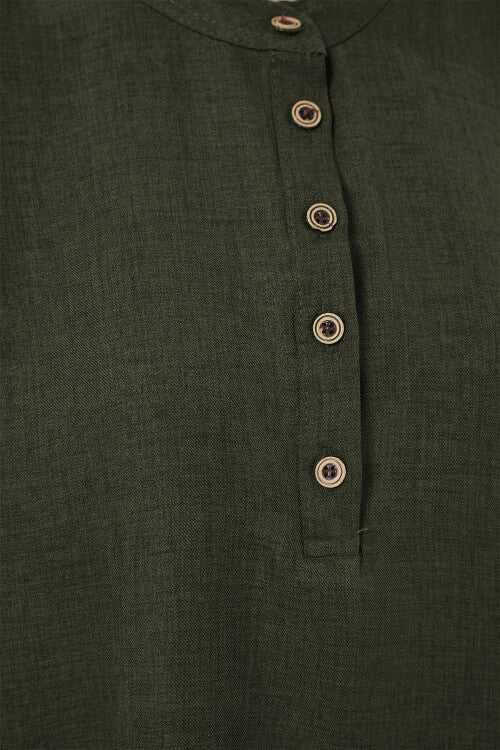 Keten Tunik Pantolon İkili Takım - Haki 6678