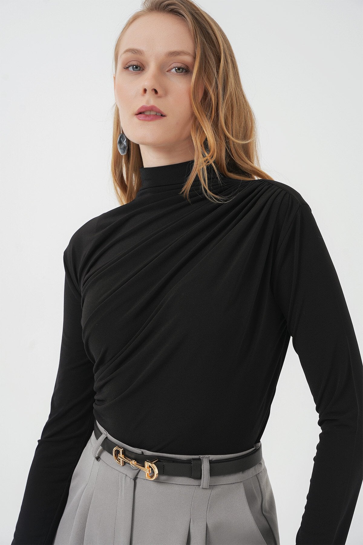Büzgü Detaylı Sandy Bluz - Siyah 925