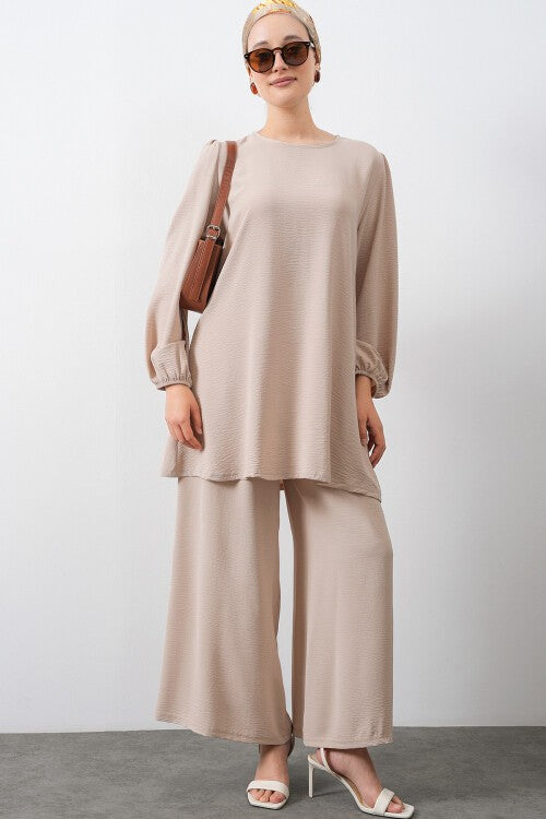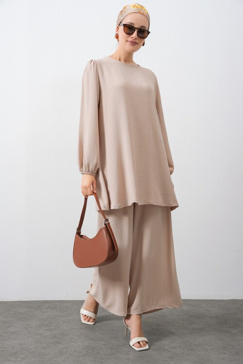Kadın Ayrobin Tunik Pantolon Alt Üst Takım - Krem