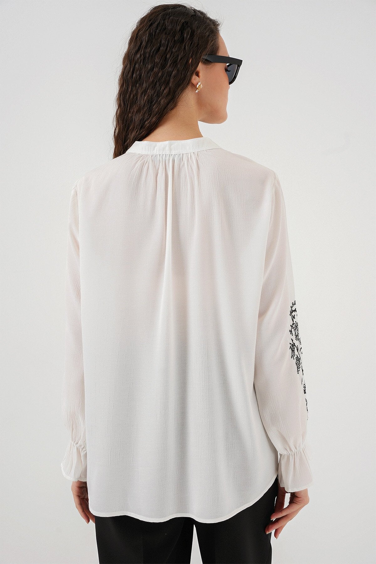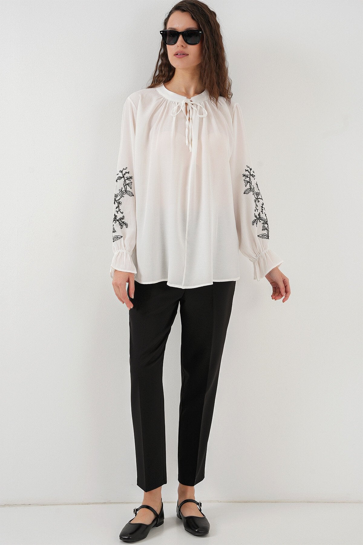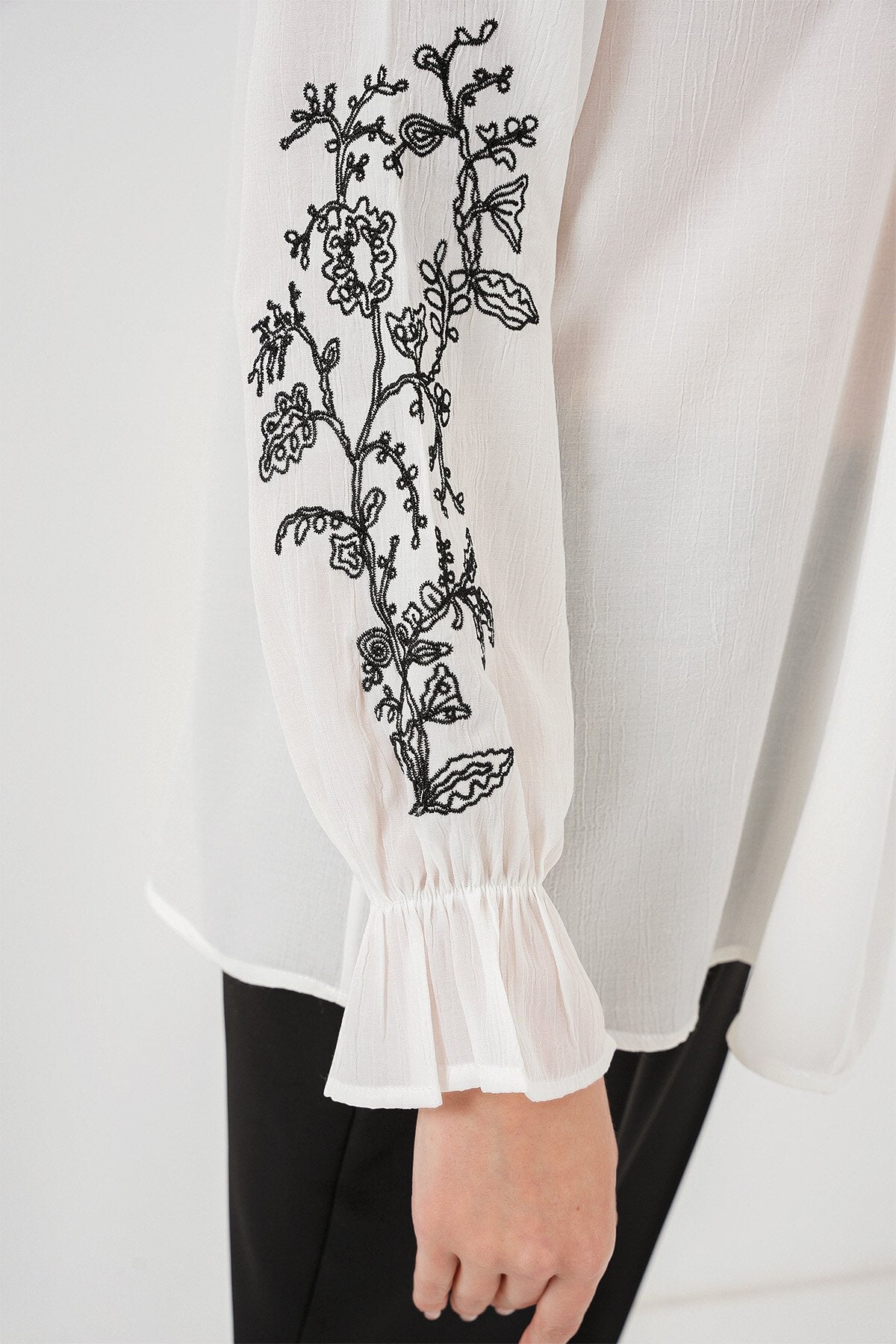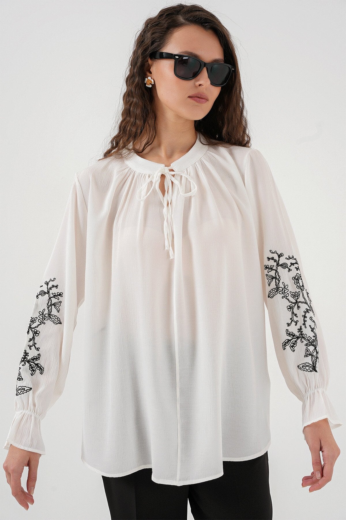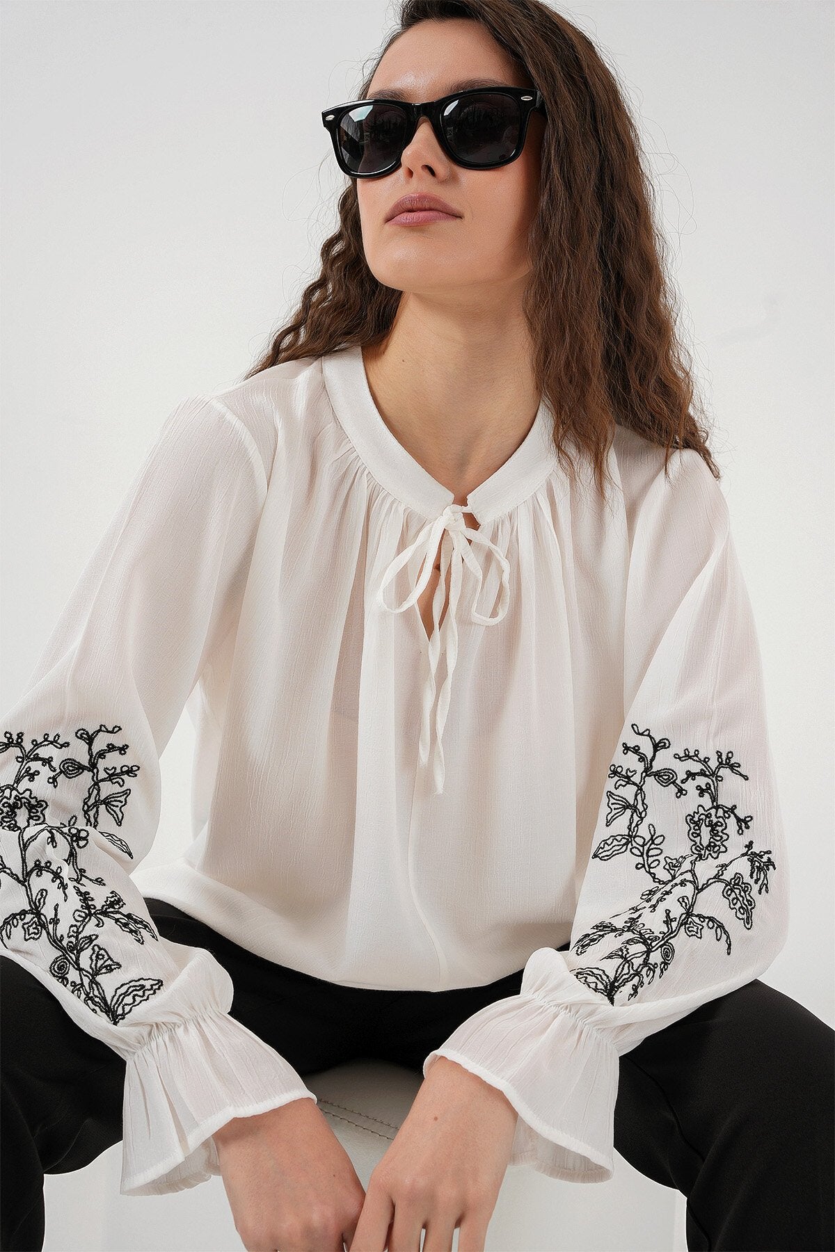 Kadın Nakışlı Örme Bluz 941 - Beyaz