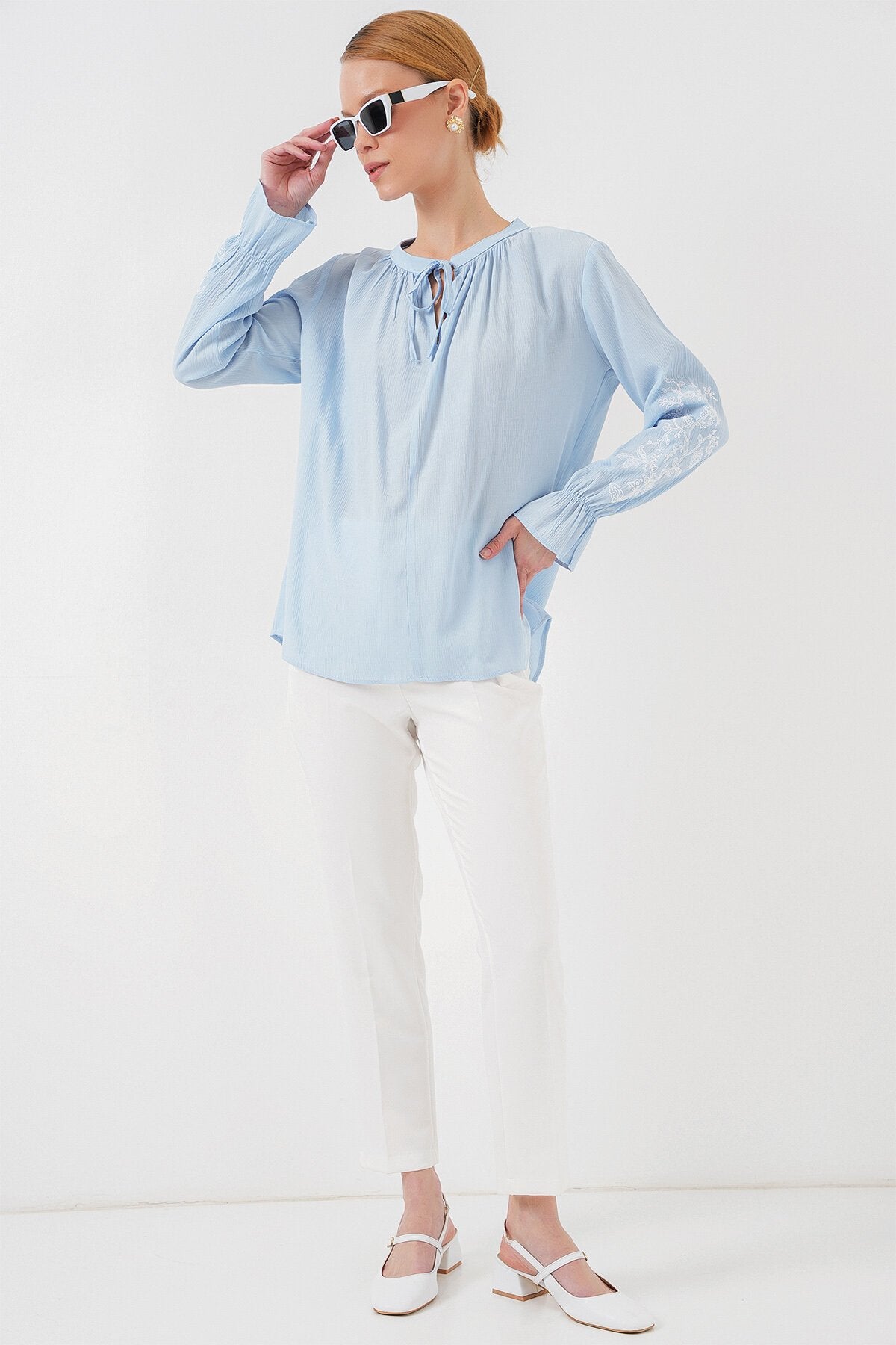 Kadın Nakışlı Örme Bluz 941 - Mavi