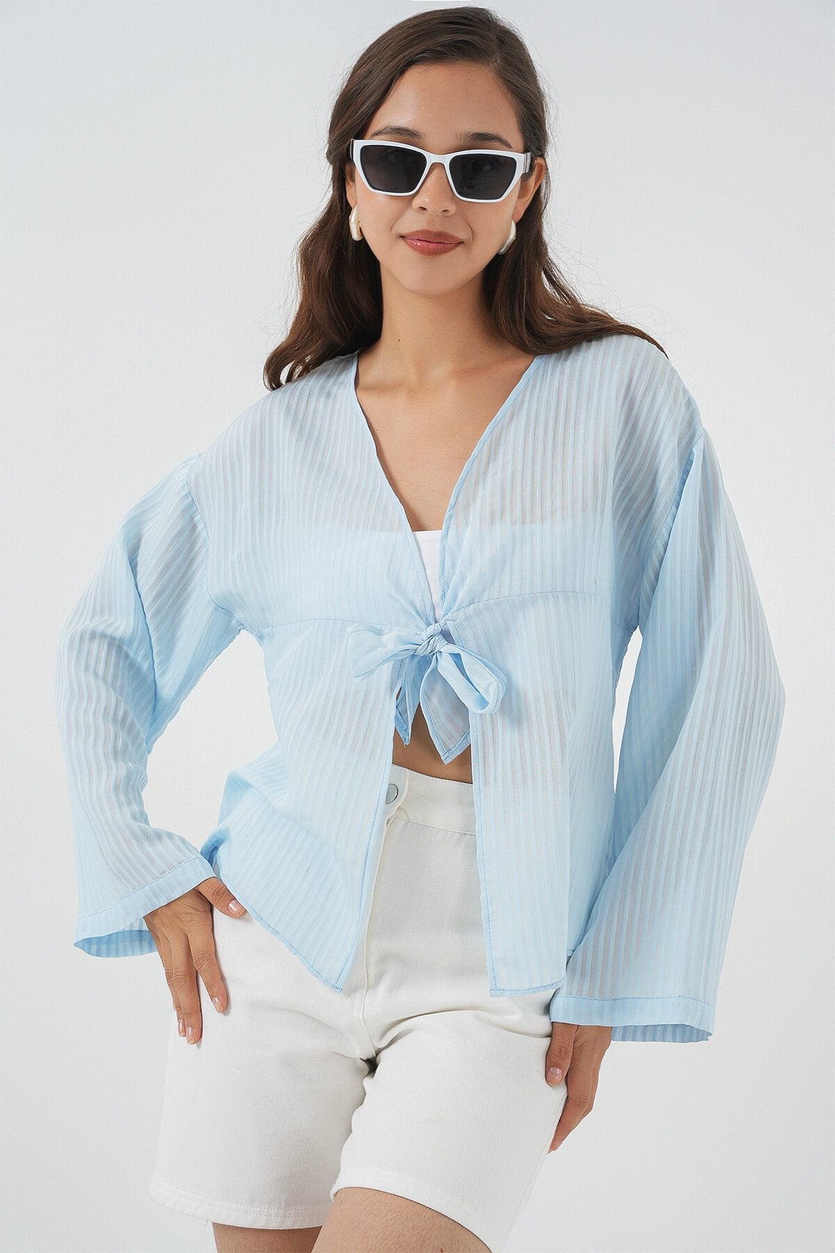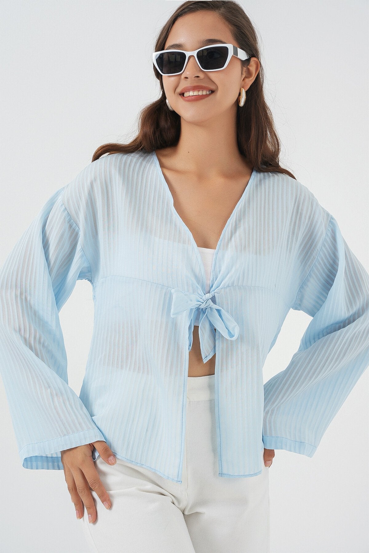 Kadın Önü Bağcıklı Bluz 952 - Mavi
