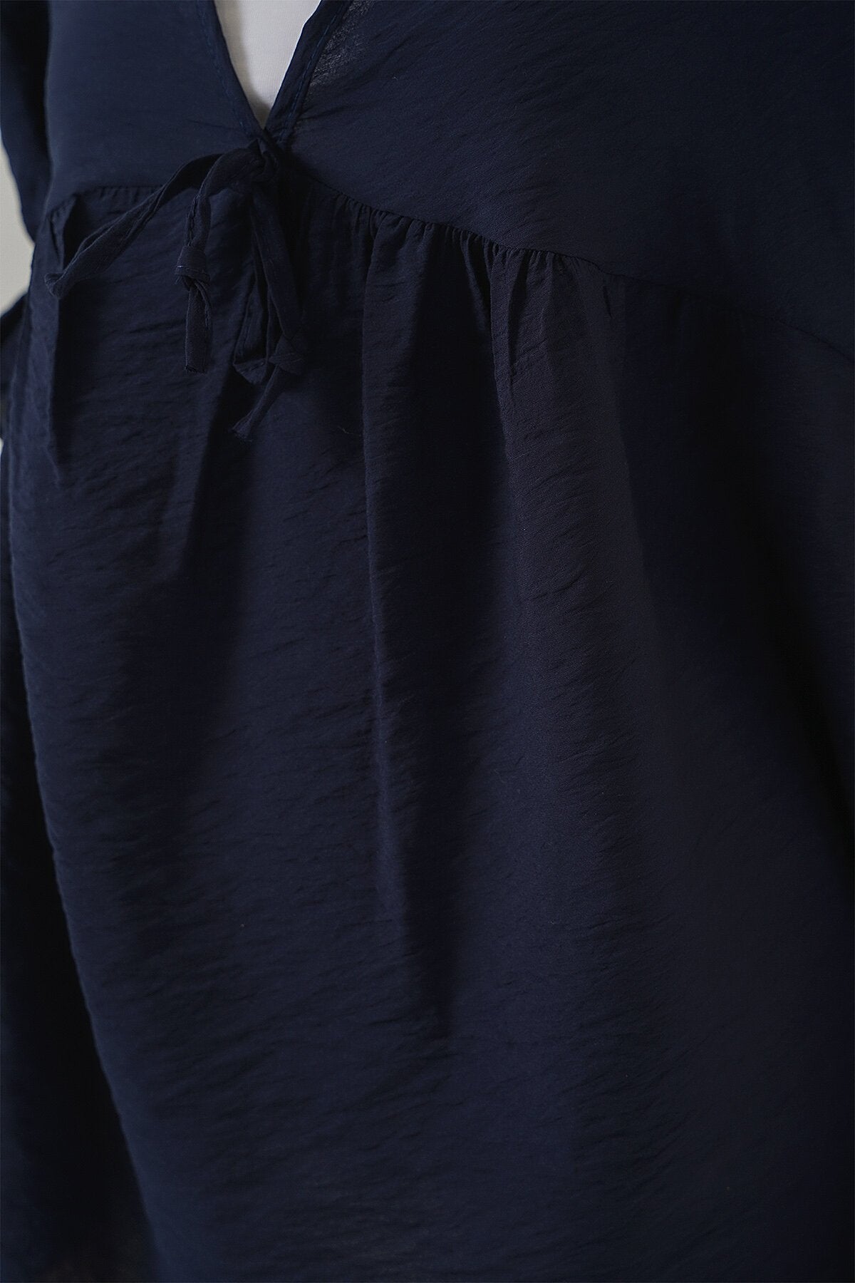 Kadın Önü Bağcıklı Kısa Kol Bluz 962 - Lacivert