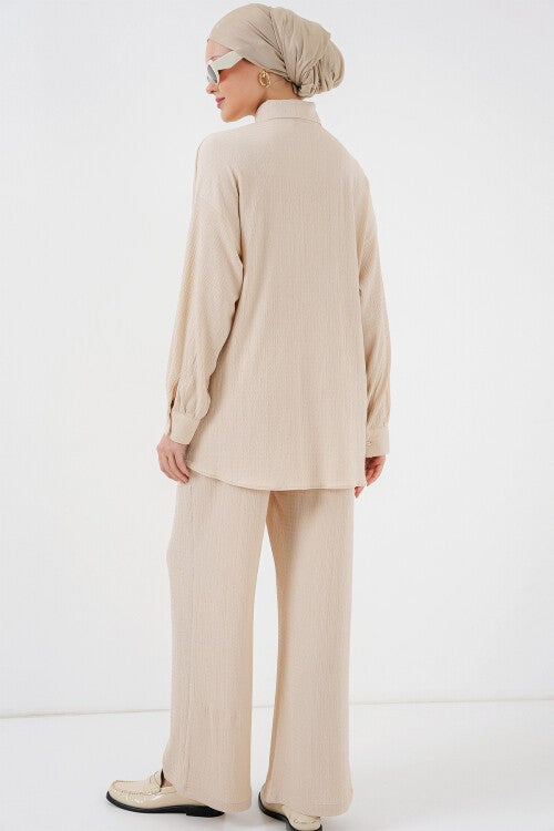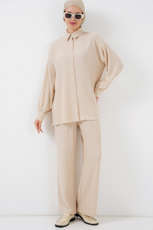 Kadın Örme Tesettür Alt Üst Takım 6711 - Krem