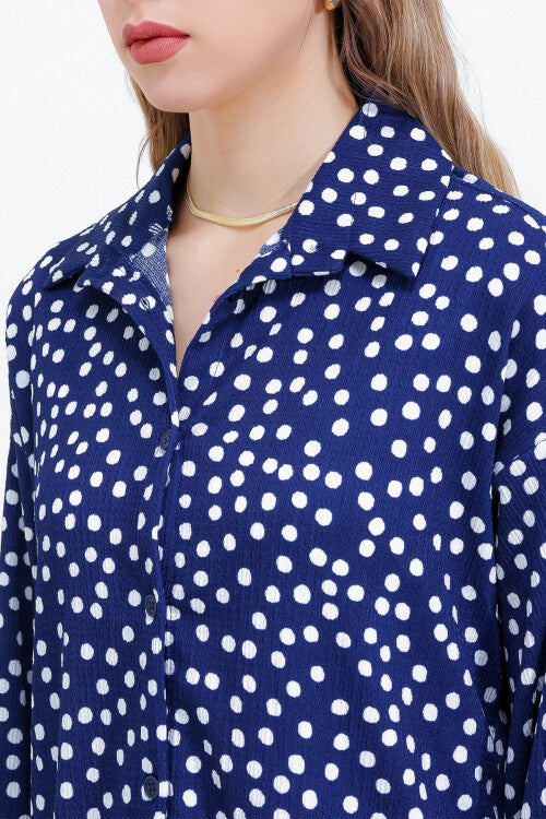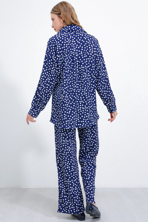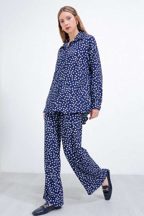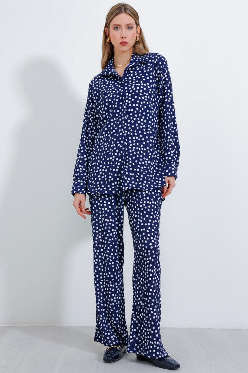 Kadın Puantiyeli Lacivert Ekru Örme İkili Takım 5858
