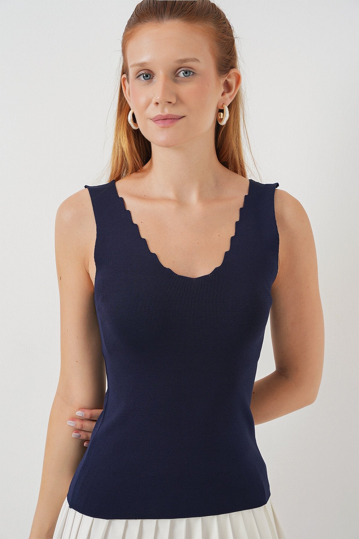 Kadın Zikzaklı V Yaka Bluz 15930 - Lacivert