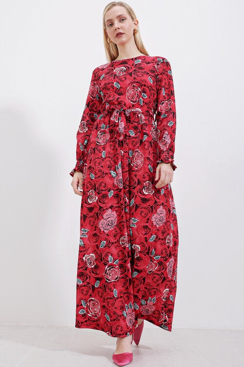 1525 Трикотажли Ҳижоб Кийими – Қ. Қизил (1525 Örme Tesettür Elbise - K. Kırmızı)