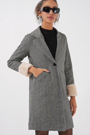 Balık Sırtı Kaşe Kaban - C.Siyah 9085