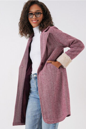 Balık Sırtı Kaşe Kaban - Y.Bordo 9085