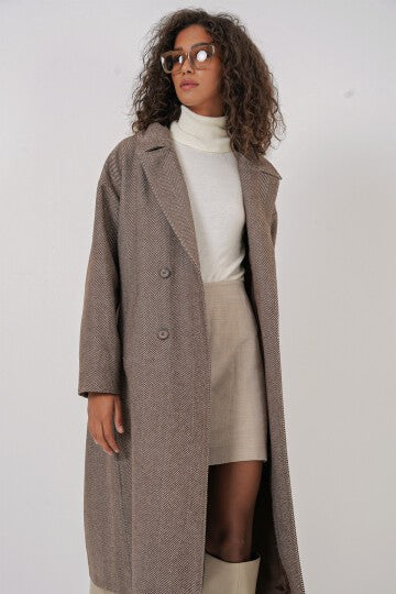 Merterium 9113 Oversize Geniş Kesim Yünlü Uzun Kaşe Kaban - A.Kahve