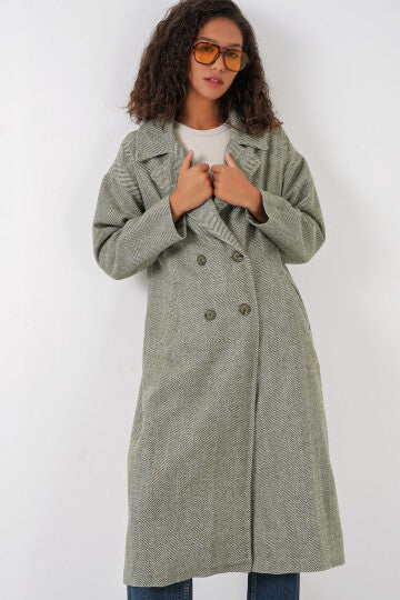 Merterium 9113 Oversize Geniş Kesim Yünlü Uzun Kaşe Kaban - Çağla