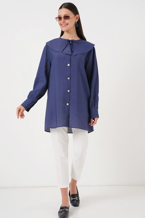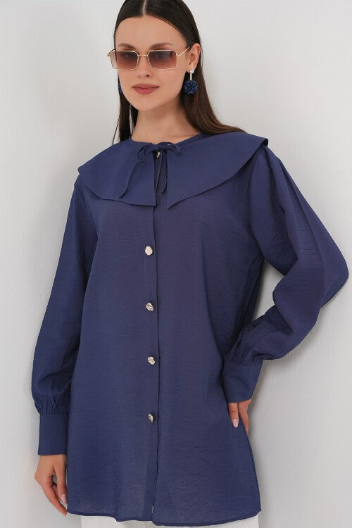 Аёллар Бебе Йакали Узун Туника 5967 — Индиго (Kadın Bebe Yaka Uzun Tunik 5967 — Индиго)