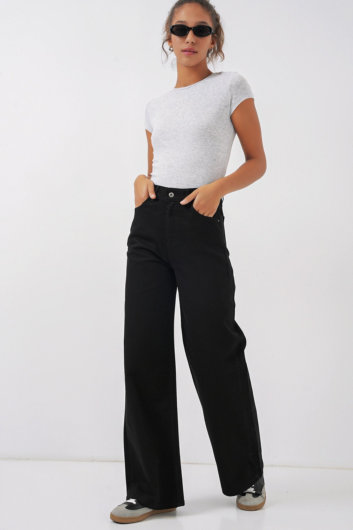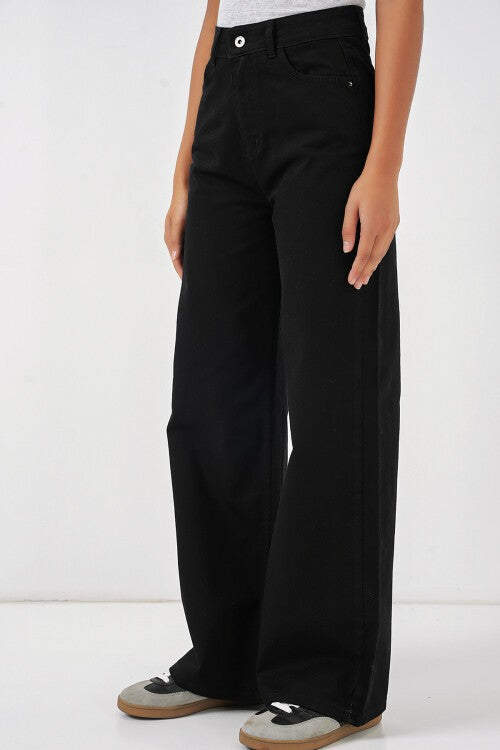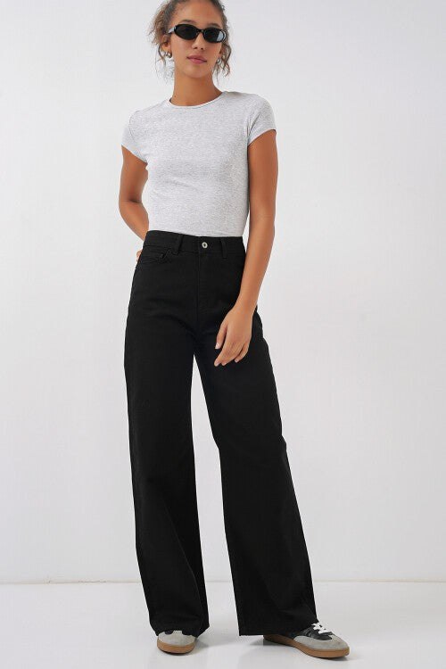 Umuman olganda, ayollarning keng oyoqli baland bel palazzo jinsi 6656 - qora
