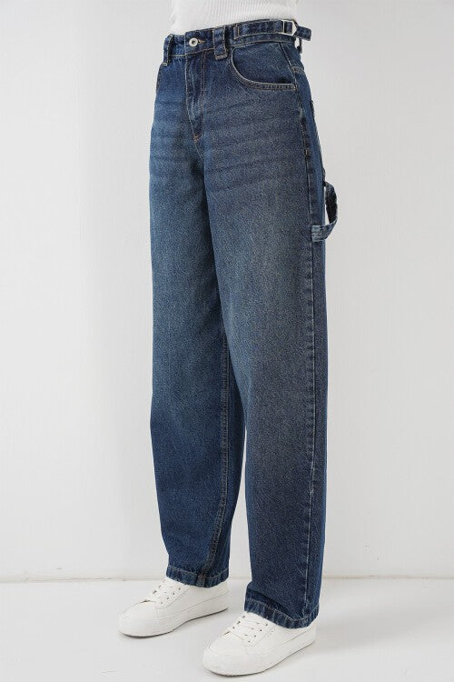 Ayollar uchun baland bel jinsi 6701 - ko'k-ko'k