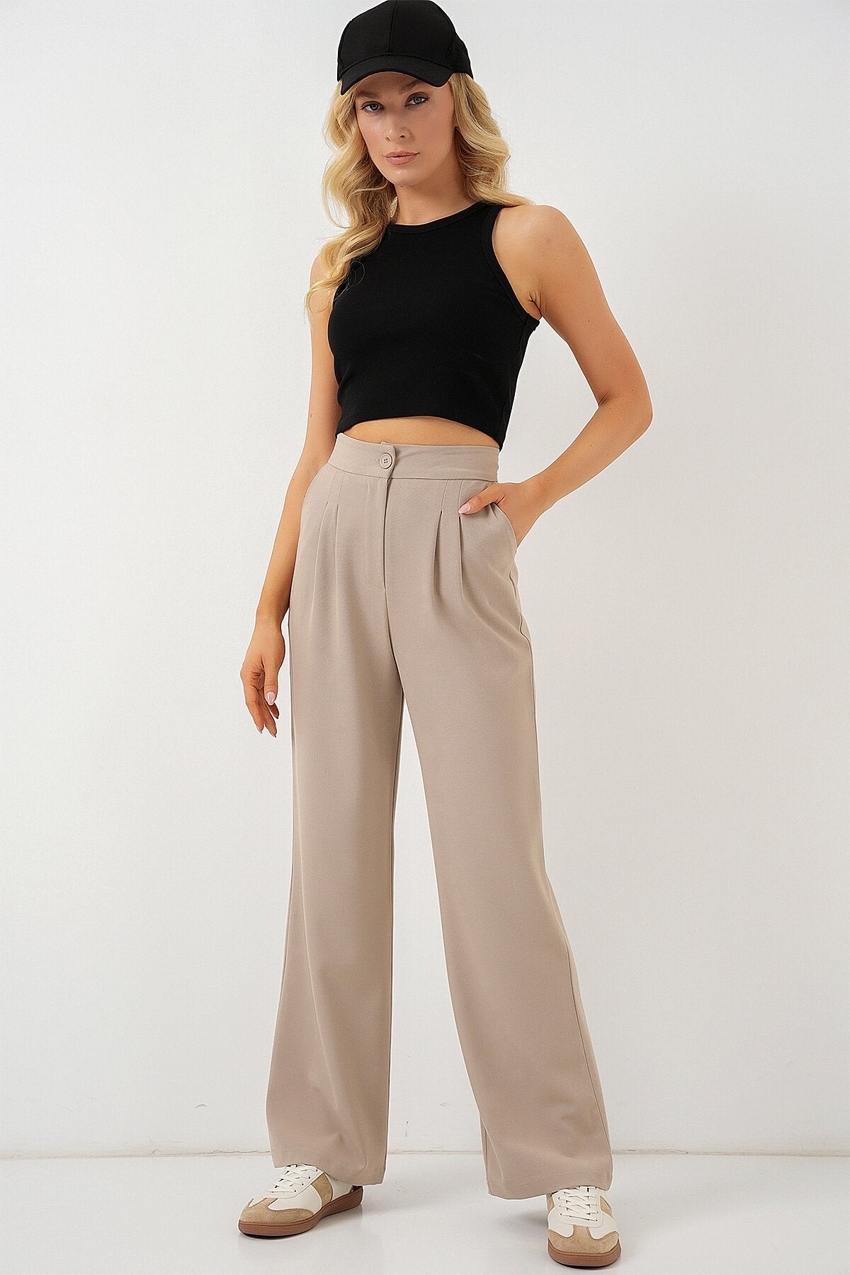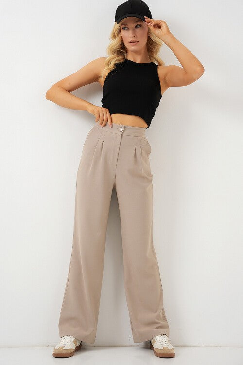 Menyu shimlari – 6638 Yuqori bel Palazzo shimlari - A.Bej