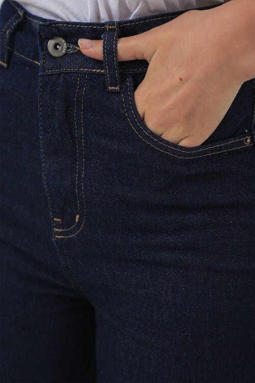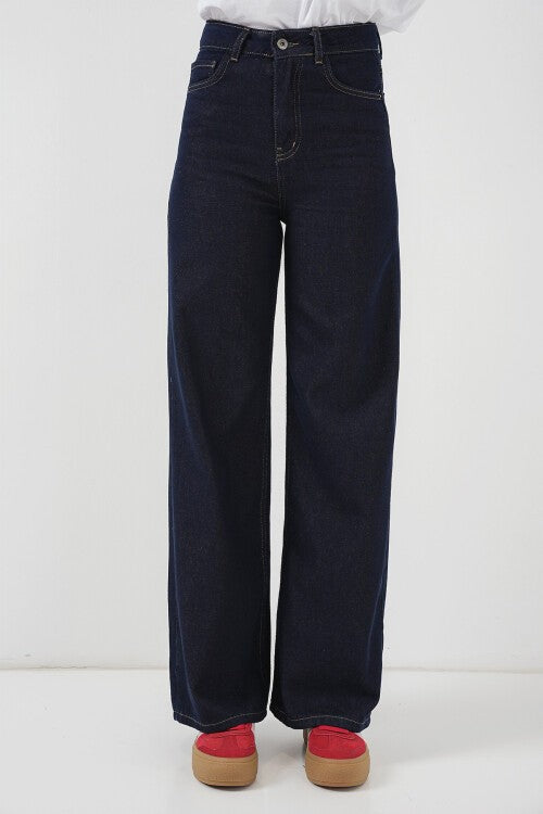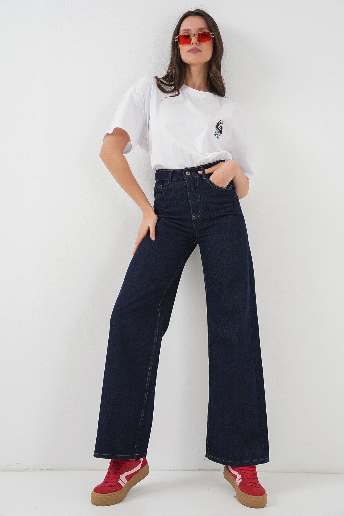 Ayollar Keng Pocha YuLori Bel Palatso Djins Shim 6656 - TK. Kuk - (Ayollar uchun keng oyoqli baland bel palazzo jinsi 6656 - to'q ko'k)