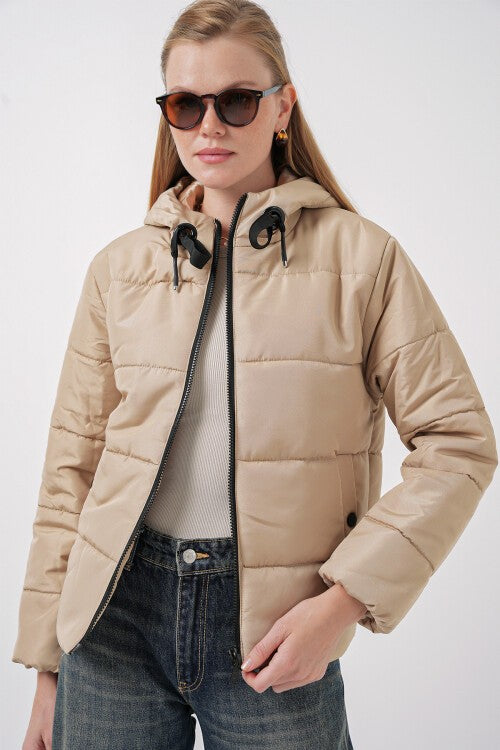 Fermuarli puffer ko'ylagi, qalpoqli puffer ko'ylagi,