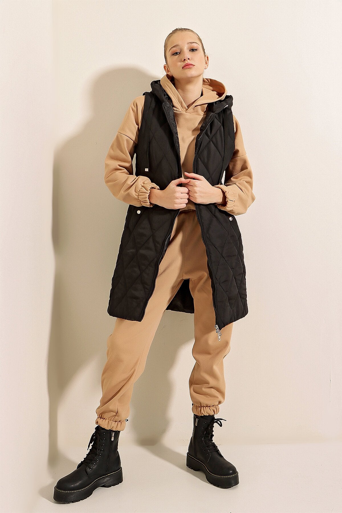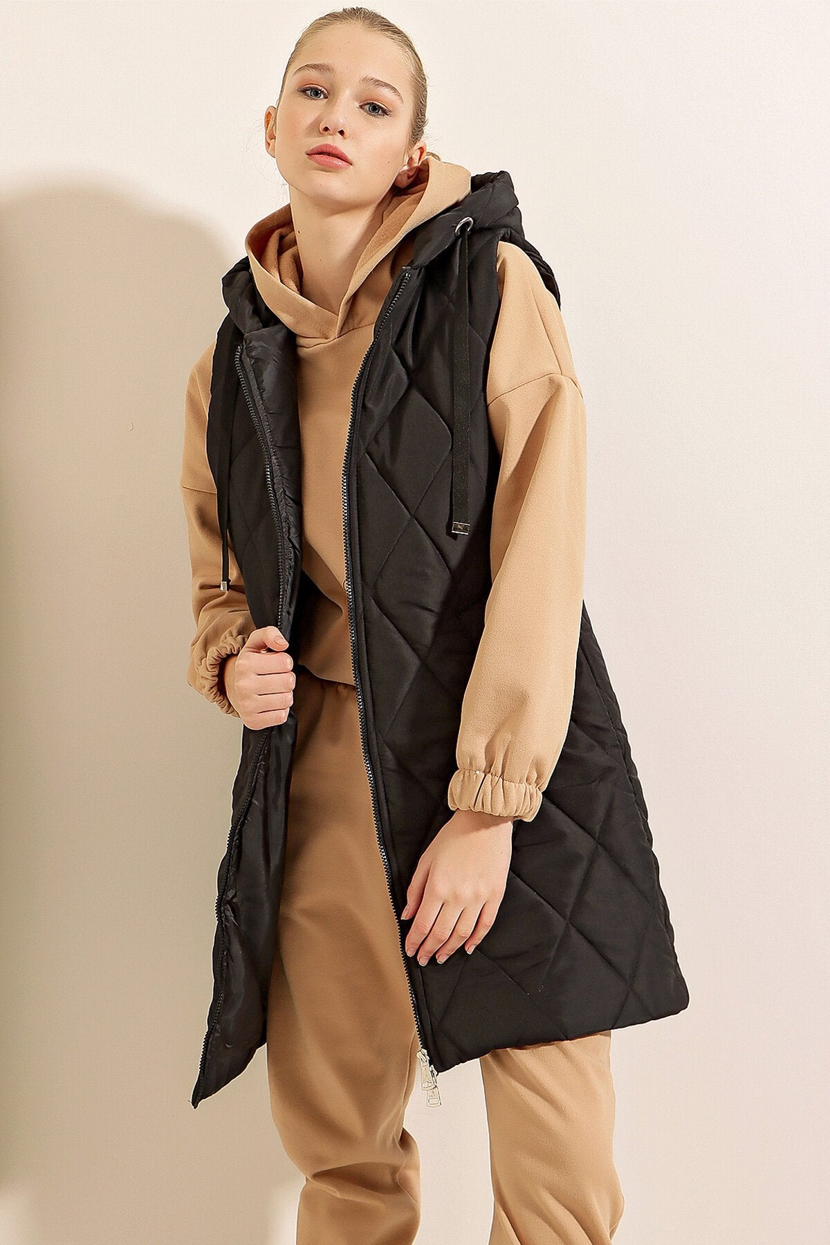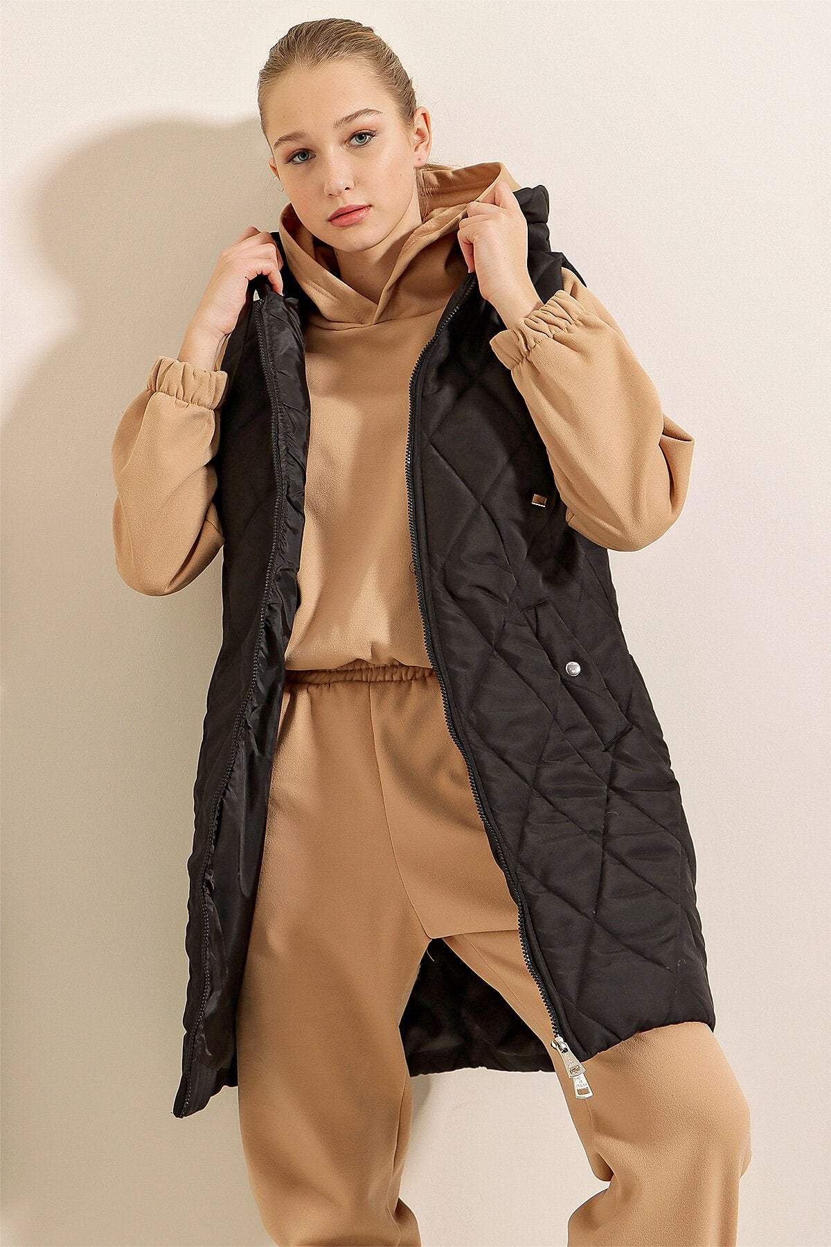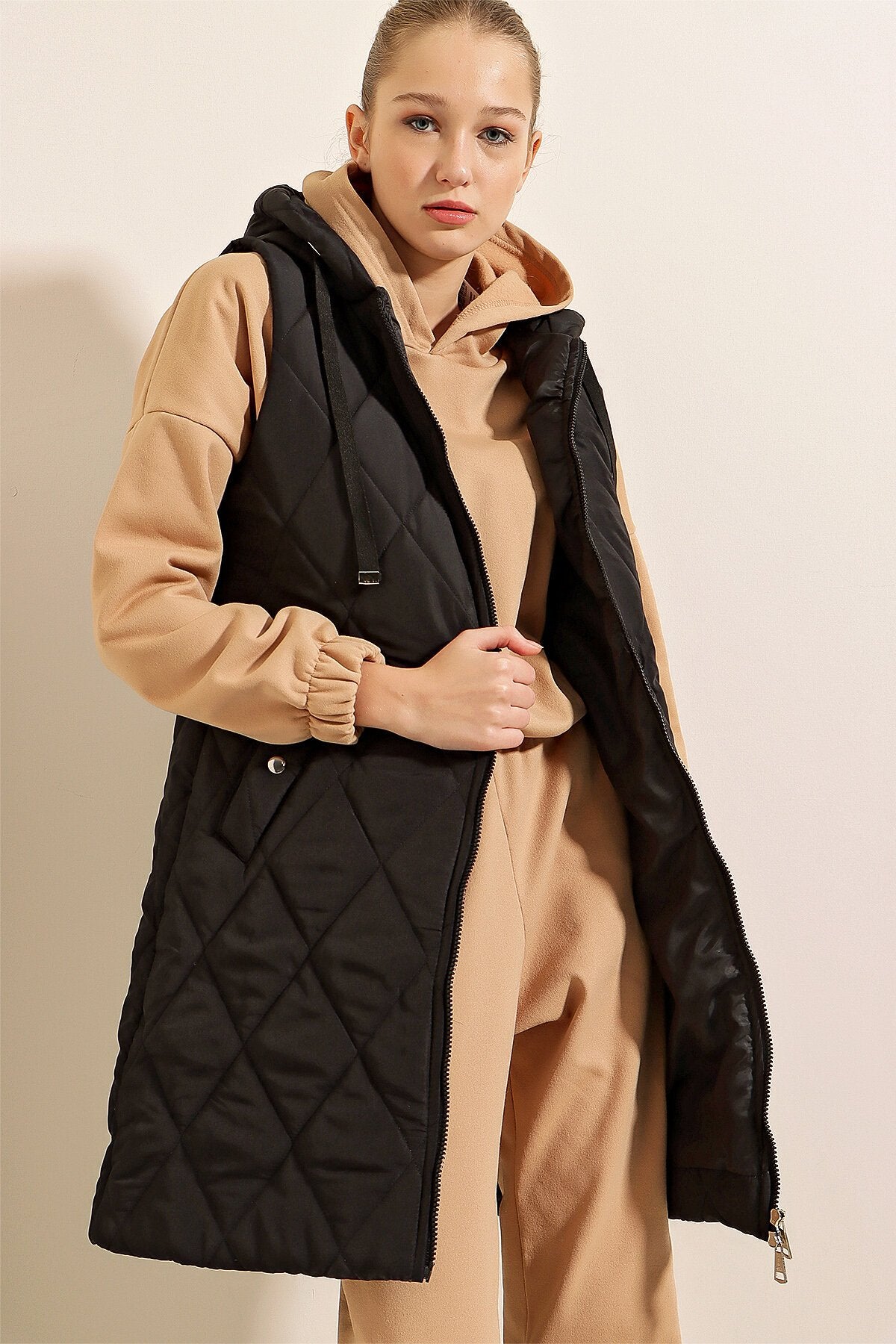 Qopqogʻi uzun puffer yelek - Oddiy qora 5140