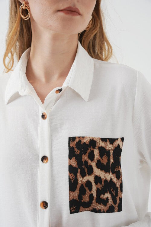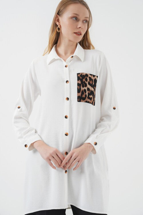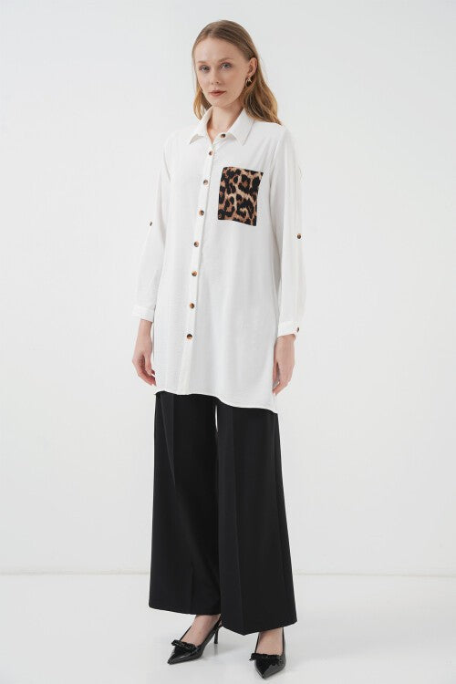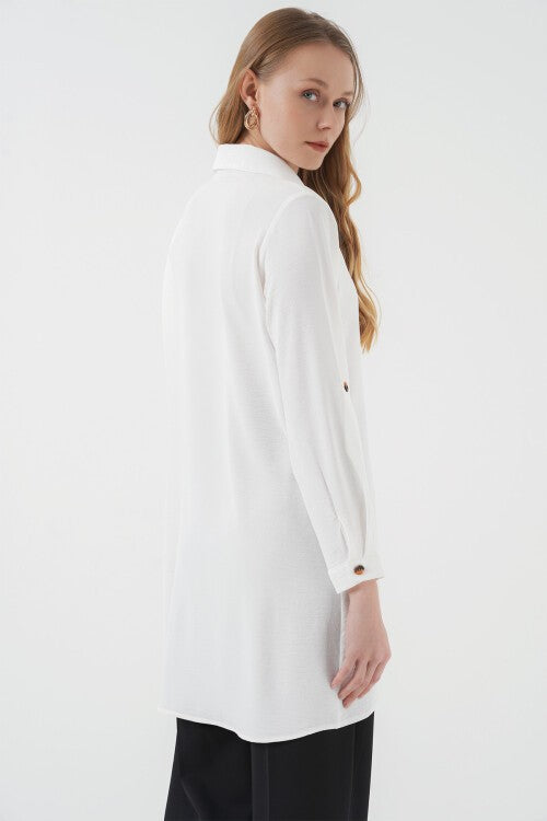 Cho'ntak Detayli Qo'ylak Tunika — Oq (5851 Cho'ntakli ko'ylak - Oq)