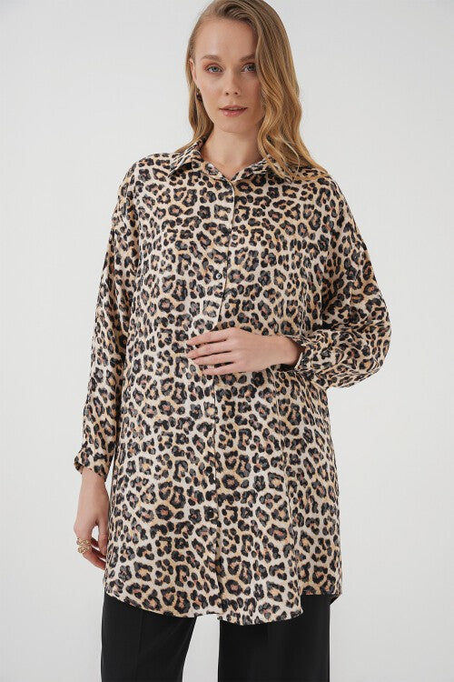 Eng mashhur tunika - Bej (5944 naqshli uzun ko'ylakli tunika - bej)