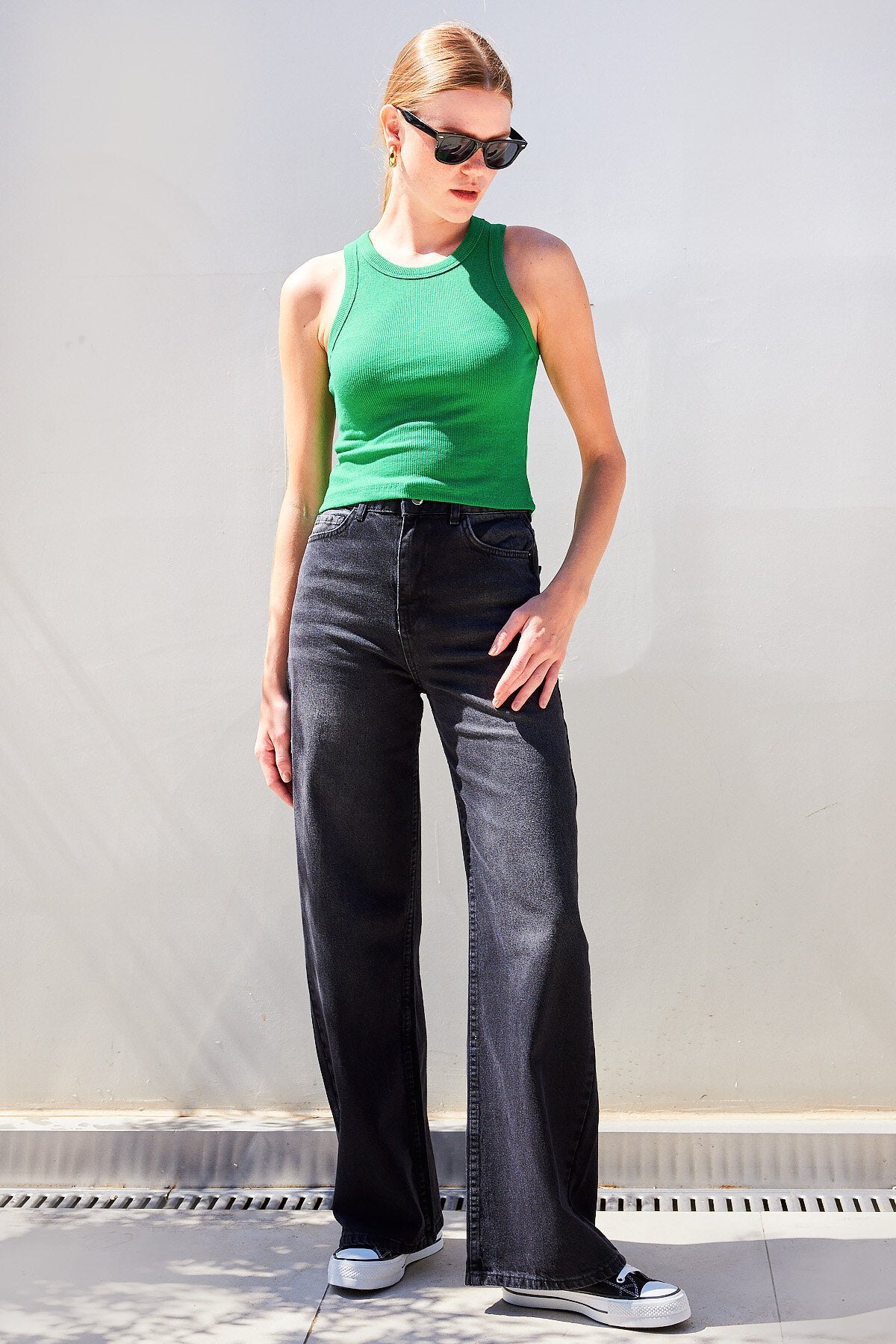 Велосипед-яка резинка кўлсиз блузка – Яшил