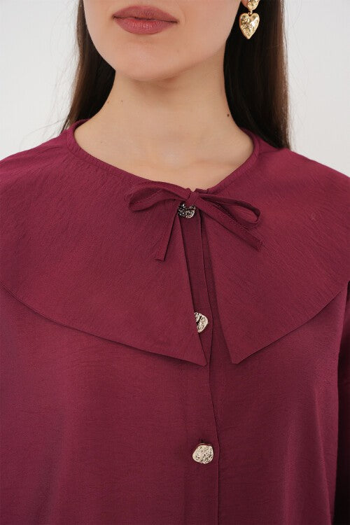 Ayollar Bebe Yakali Uzun Tunika- Bordo (Ayollar chaqaloq yoqasi uzun tunika 5967 - Klaret qizil)