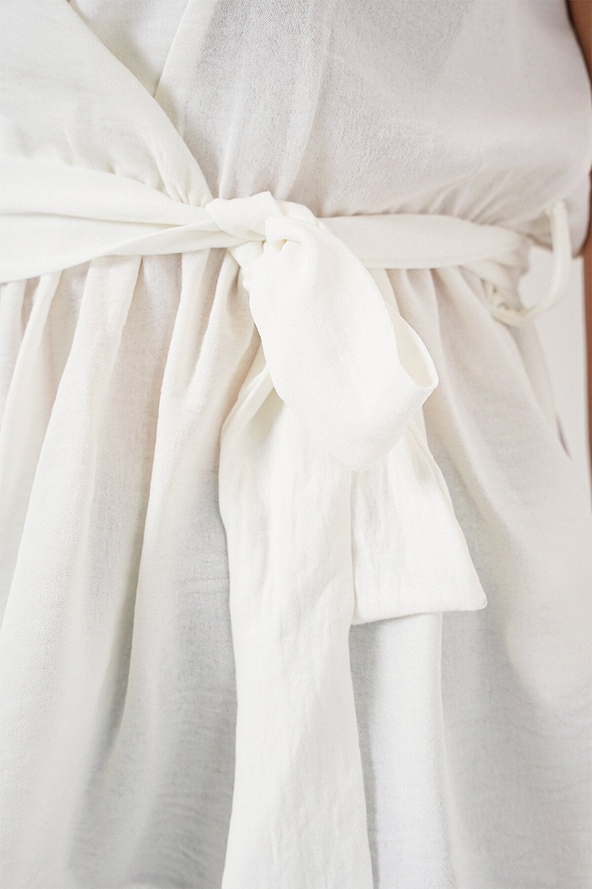 Аёллар Круазе Йака Ҳанксиз Блузка – Оқ