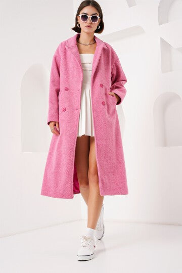 Merterium Fuchsia katta o'lchamli keng qirqimli jun uzun kashmir palto 9113