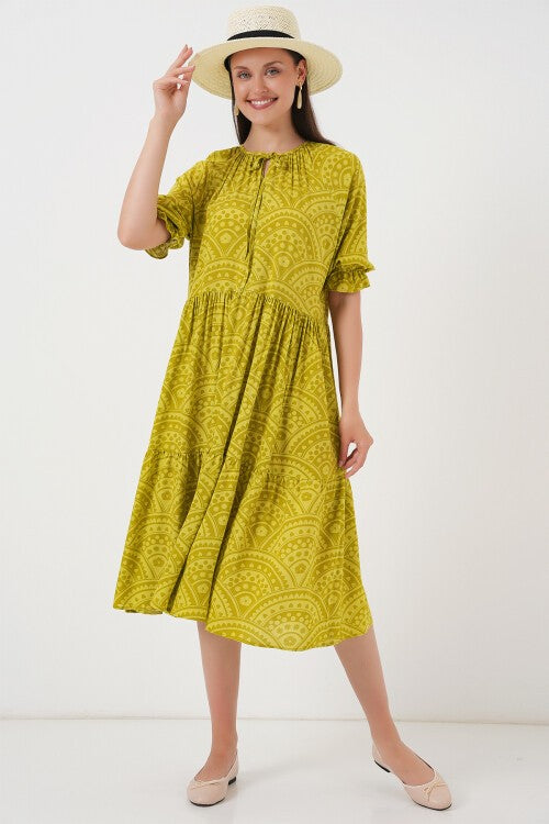 Ayollar TisLa Engli Naqshli Kiyim 2553 – E.Yashil (Ayollar uchun kalta yengli naqshli ko'ylak 2553 - E.Green)