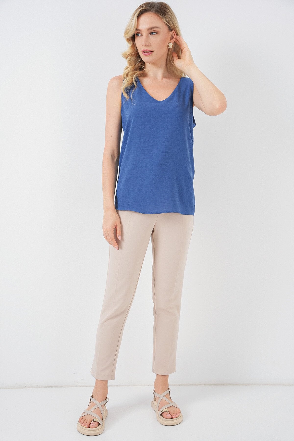 V-образный Йака Ҳанксиз Блузка - Индиго